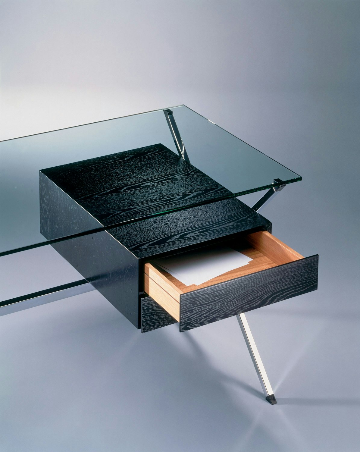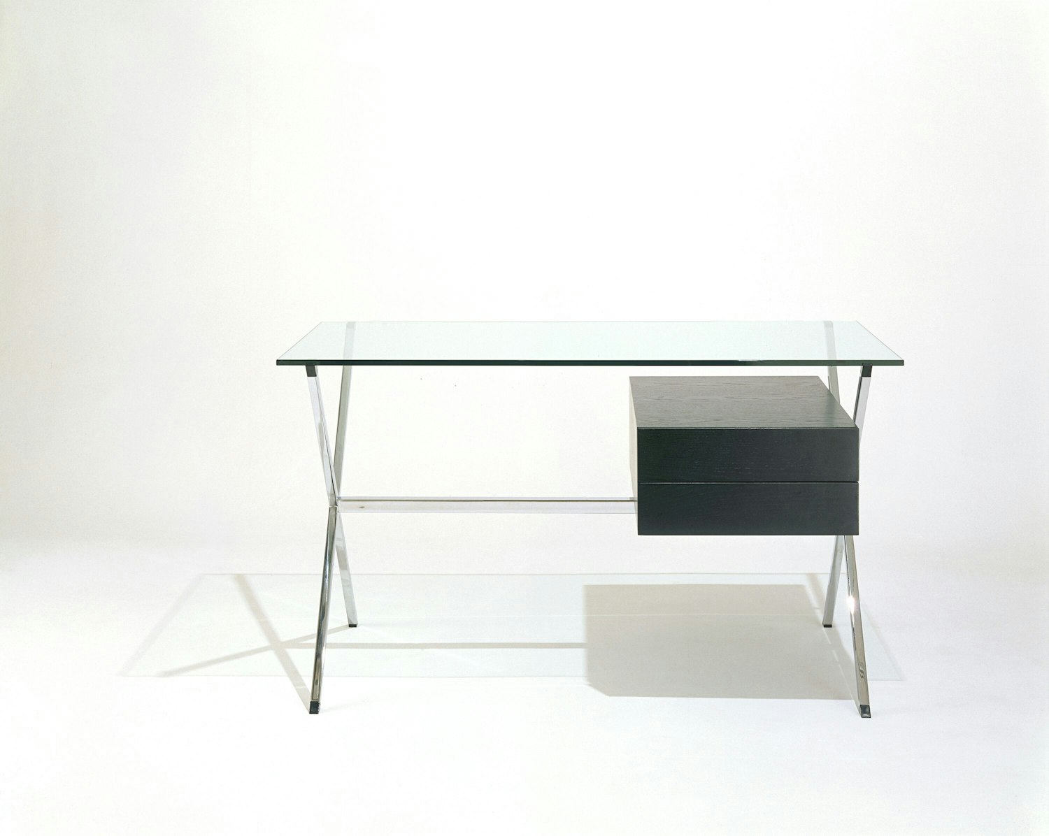 The Albini Desk combines glass, steel and wood with striking clarity and balance. A clear demonstration of Albini’s rationalist design philosophy and minimalist aesthetic, the design derives its appeal through simplicity of form and celebration of material, without extraneous ornamentation.