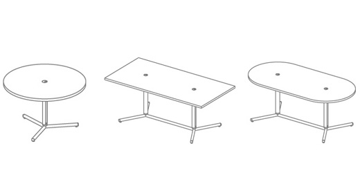 Antenna Y-base tables offer unobstructed knee space and advanced cable management in compact shapes designed for small workstations and meeting spaces. Y-base tables combine standard Antenna tops with a grommet centered over posts and integral wire management channel and a low-profile, three-spoke “Y” base or “bowtie” shape base. Round tables are available in low, desk and standing heights and track tables are available in desk and standing heights.