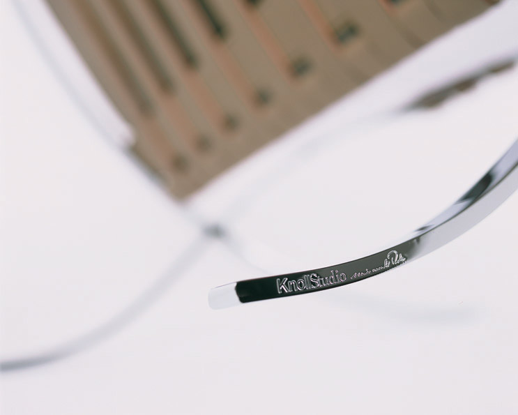 • The Knoll logo and signature of Ludwig Mies van der Rohe are stamped into the leg