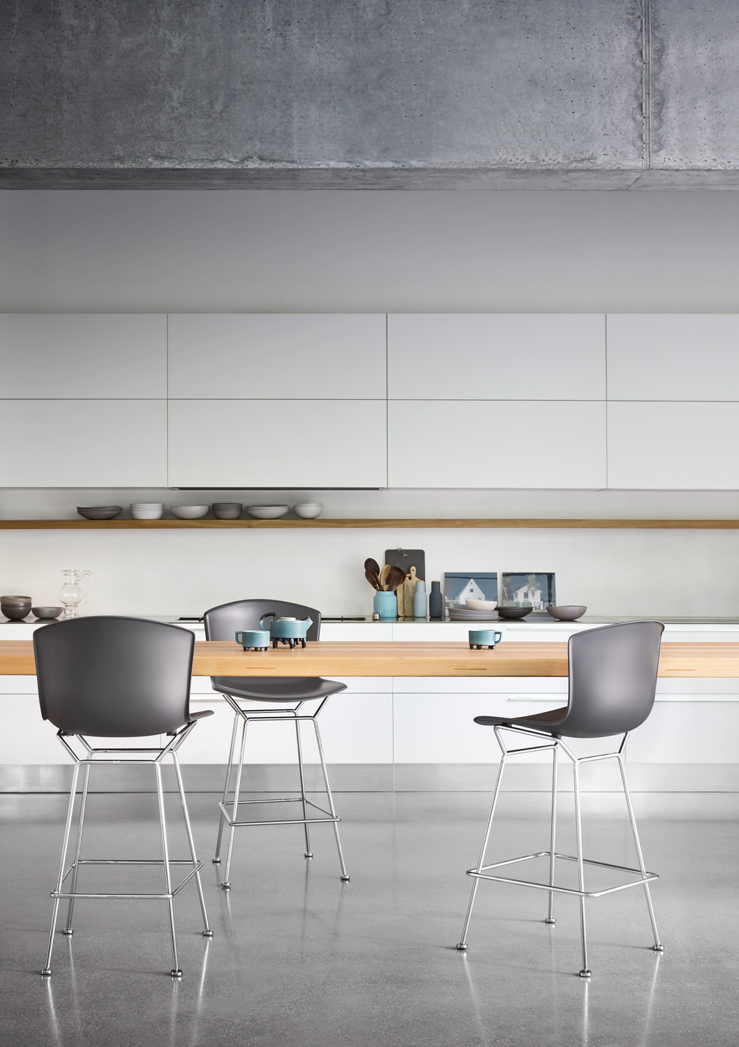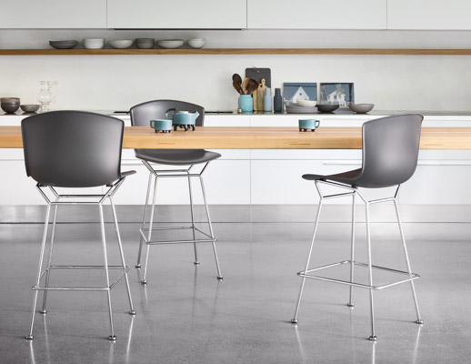 The Bertoia Molded Shell Barstool is a reintroduction of a design originally debuted in 1960. Merging the sublime grace of the wire-form base with a touch of color and natural flex, the reinvigorated classic is ready to add colorful accents to any room. Mix and match the stools or keep a singular color palette, the Bertoia Molded Shell Barstool offers an iconic design with a playful tone.