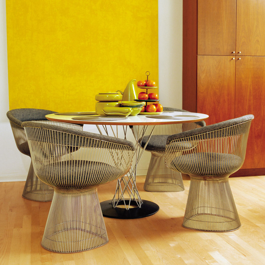 After making the switch from plastic to wire and scaling the design to table size, Knoll marketed the Cyclone alongside the Bertoia wire chair collection for several years. The table was taken out of production in 1974, but was reintroduced in 2003. In collaboration with the Noguchi Foundation, the design is meticulously reproduced using Noguchi’s original drawings.