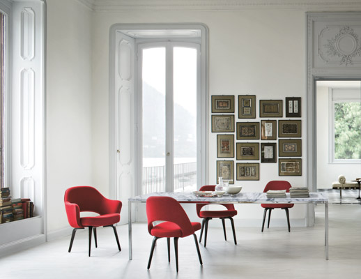 Among these were a series of End Tables that, in their slim frames, extended the aesthetic of modernism to every corner of the office. In celebration of the designer’s 100th birthday, Knoll introduced new products to the Florence Knoll Collection, including a line of Dining Tables and a Mini Desk, that echo the successful forms of her past designs and translate Shu’s architectural sensibilities from the corporate office to the home.
