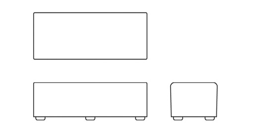 • Four no-tool ganging brackets are standard on all pieces except stool and pouf