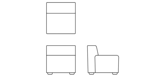 • Four no-tool ganging brackets are standard on all pieces except stool and pouf