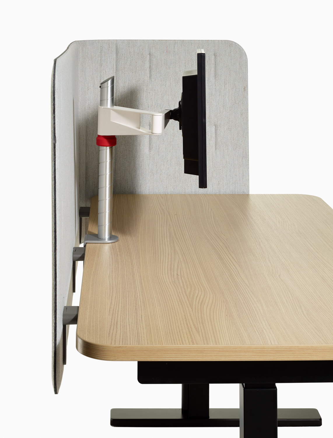 Available in a variety of mounting options, k. screen Contour can be used on any table or desk with a flat edge regardless of a table’s support structure or accessories mounted under the top.