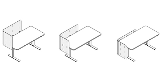 • Side screen + bracket thickness: .875" including .375" gap between worksurface and screen