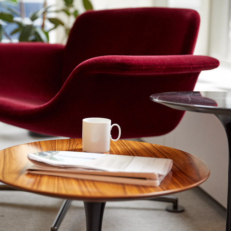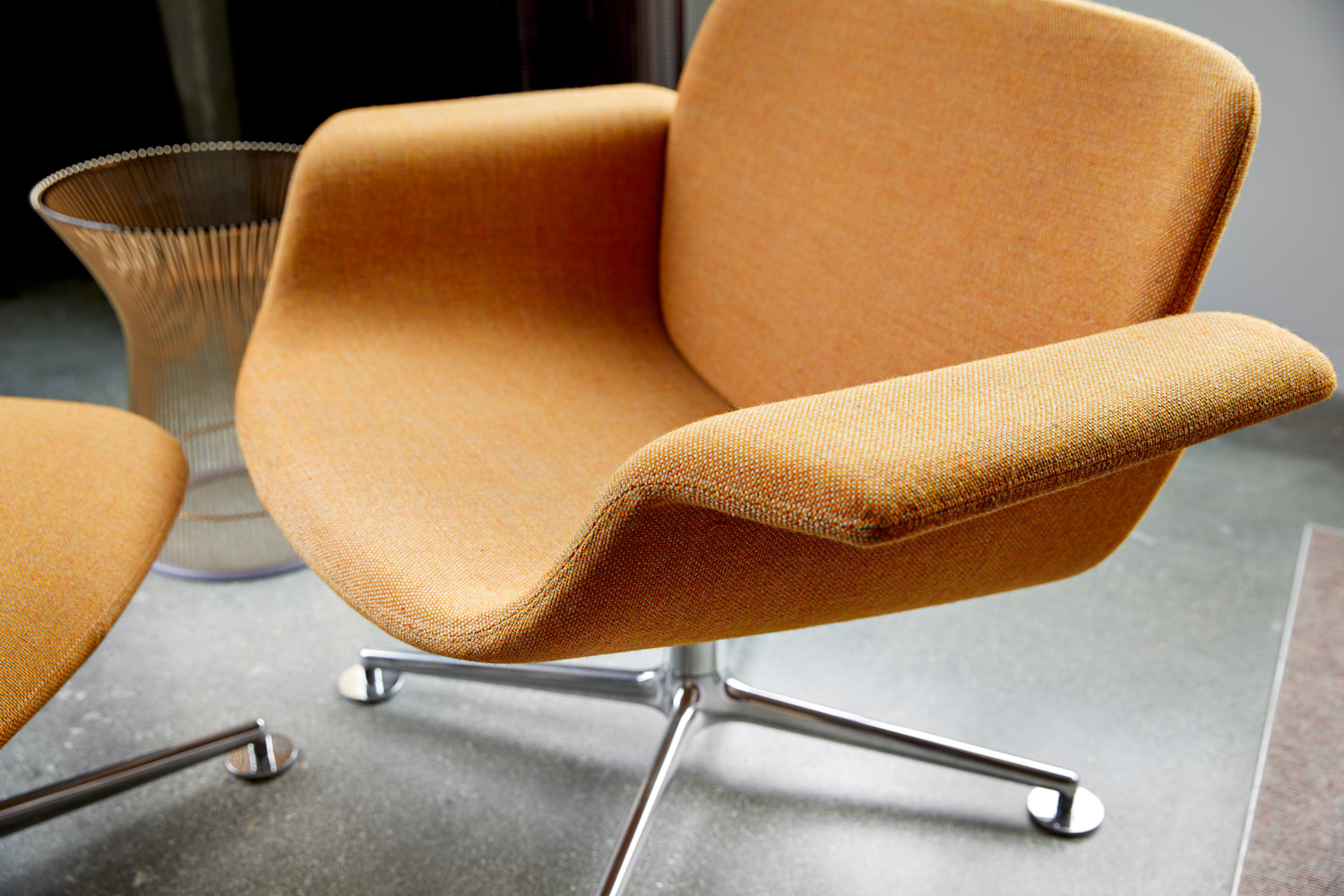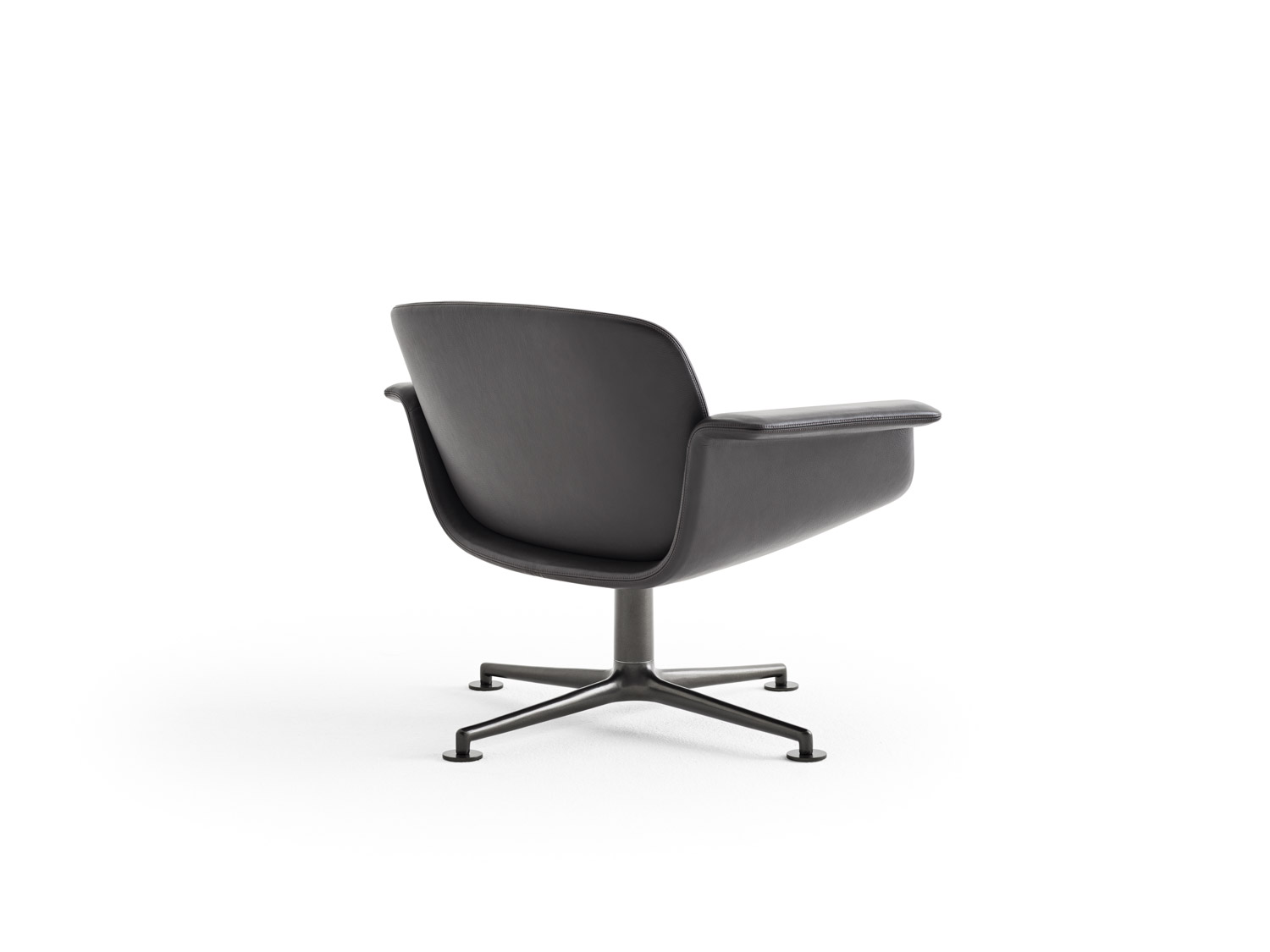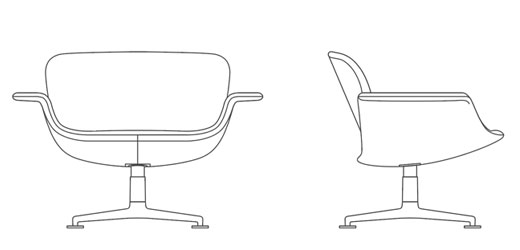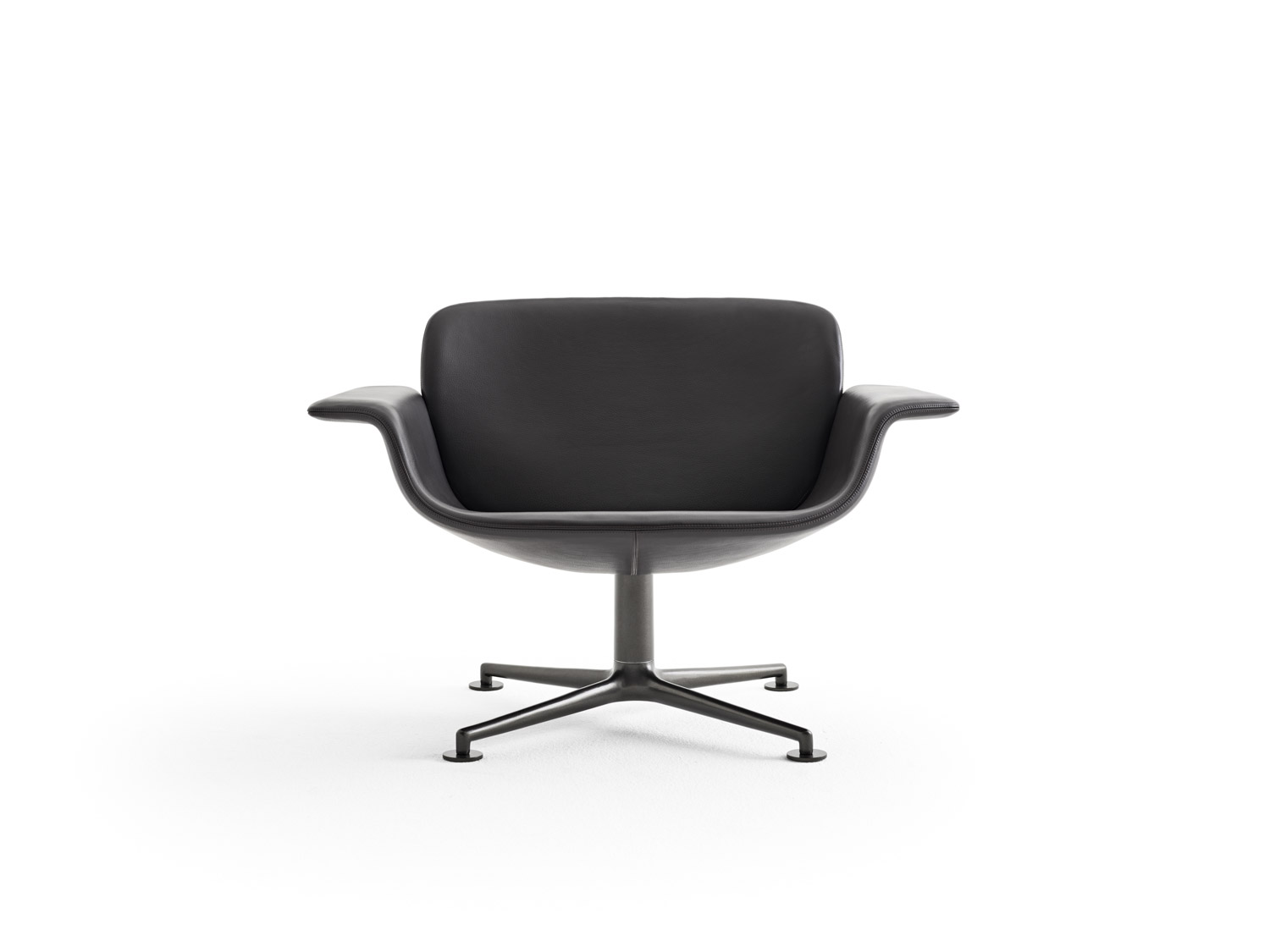 KN01, a low-back lounge chair, features a curved silhouette and aluminum base. Its balanced proportions deliver a compact footprint and inviting form ideal for modern living, meeting and community spaces.