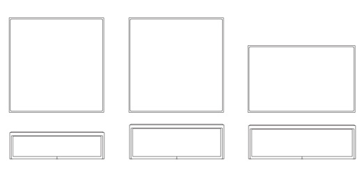 • Marble and glass tops are ¾” thick with radius corners. Tops rest within the frame