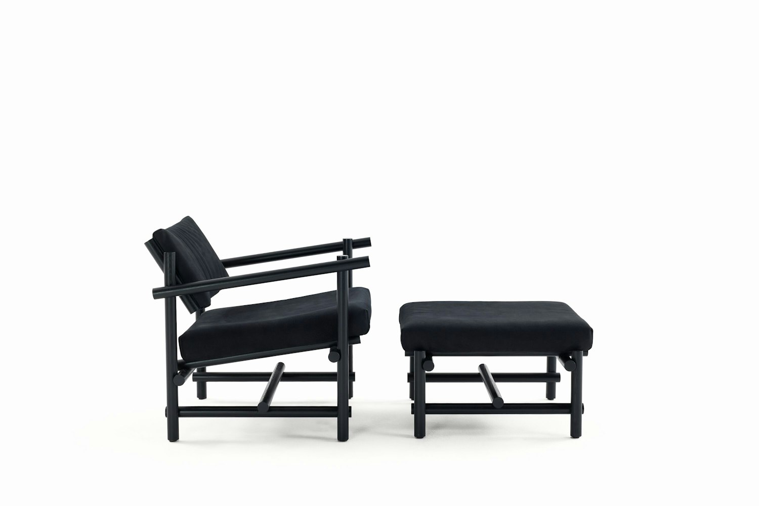 19638 | Muecke Ottoman - Ducale Velour in Black Hills, Ebonized Ash
