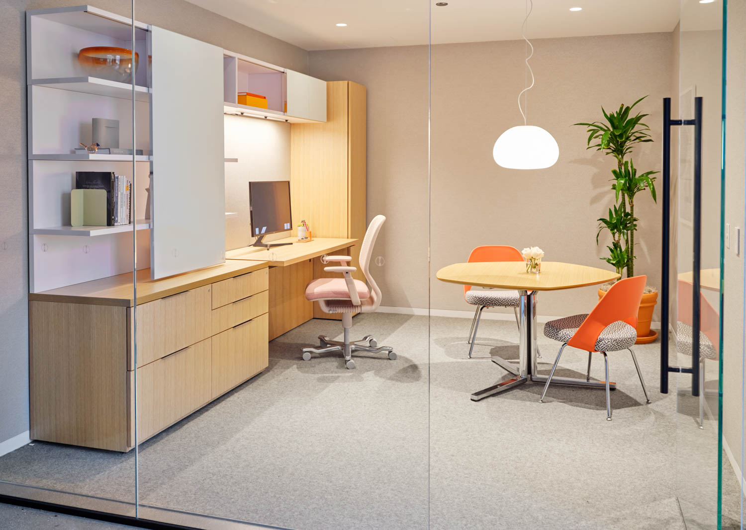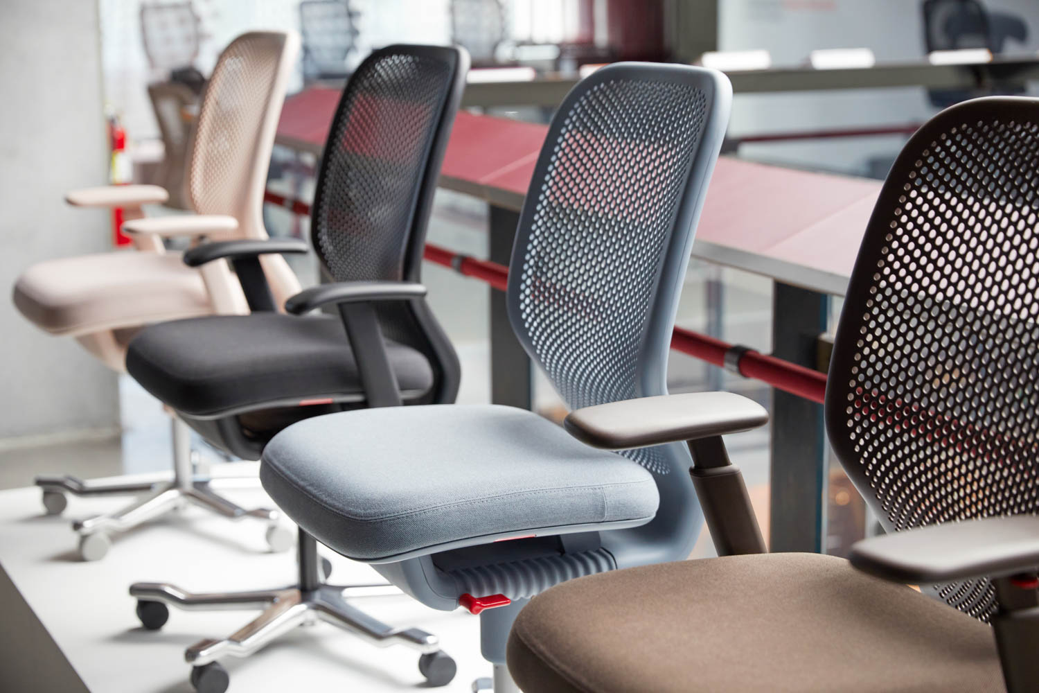 19255 | MillerKnoll San Francisco Showroom with Cove Collection by Knoll Private Workstation, Newson Chair, and Florence Knoll Bench