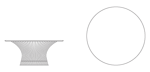• Base constructed of vertical steel rods welded to circular horizontal and edge-framing rods