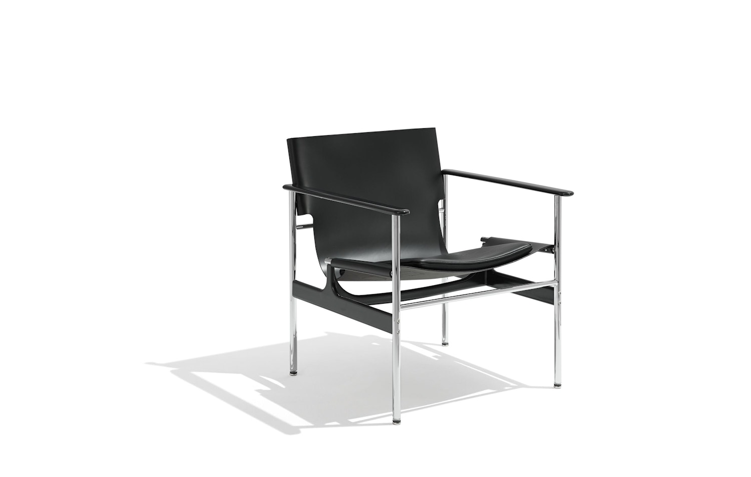 Designed in 1960 and originally manufactured from 1964-79, the steel and leather ‘sling chair’ or '657', as it is commonly referred to, offers a refined combination of materials and finishes. Tubular steel legs connect to cast-aluminum arms and stretchers with exposed hardware, exemplifying Pollock’s ‘honest’ approach to design. Reintroduced 2014.