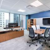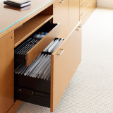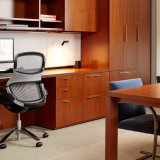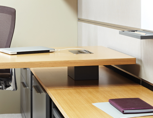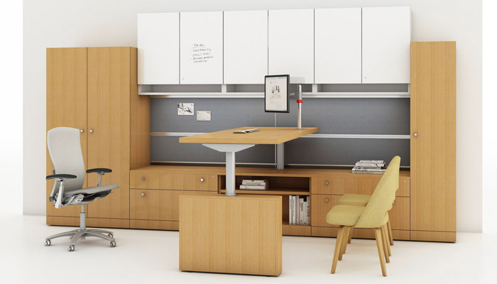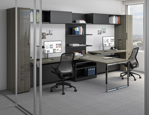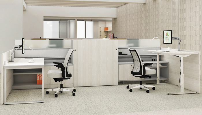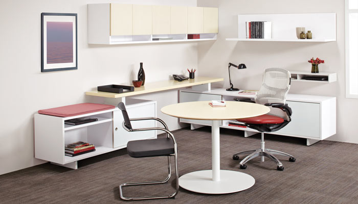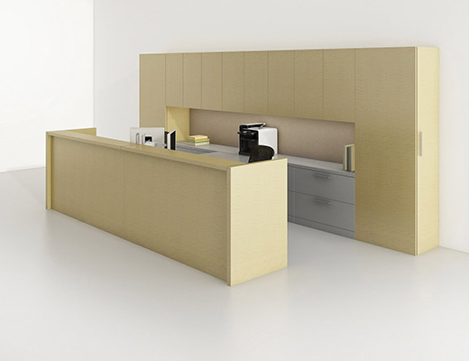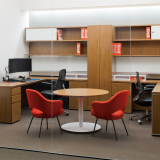 Brian Graham: “We’ve really rechristened the classic look for the modern workplace. We’ve created a series of freestanding cabinetry and credenzas that are lifted off the ground, so they communicate lightness in scale and a fluidity that are very modern. The same exact storage componentry comes into the open office, which really fulfills the original Reff promise of total, seamless integration of the workplace.”