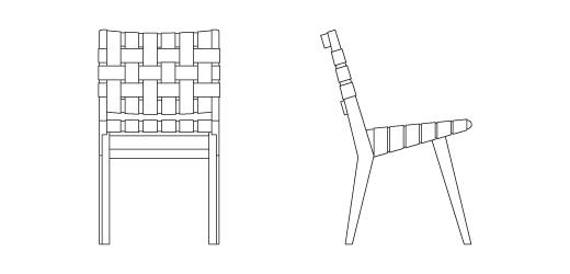 With this in mind, Risom designed a complete line of simple modern chairs, tables and storage that could be made locally, with materials not limited by wartime supply restrictions. Risom’s approach was perfectly suited for the challenge: “Design is a creative effort to successfully solve problems; ‘good design,’ therefore, is a ‘good solution’ which must satisfy the many requirements.” The resulting furniture, which Risom described as “very basic, very simple, inexpensive, easy to make” was made from offcast wood and discarded nylon webbing from parachute factories.