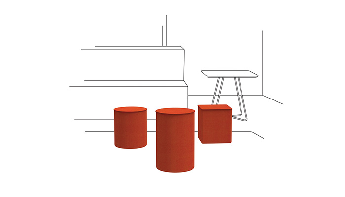 Unscripted steps are building blocks that bring an improvisational, communal experience to spaces where people can be “alone together” or “together together,” and create natural, open transitions from one experience to the next. Rather than a static built-in solution, simple cubic forms plan together in myriad ways, allowing people to define their configuration with a sense of theater and play. Create bleachers, amphitheaters and pocket parks where you can focus, relax or connect. The honest expression of plywood and the durable covered option invite you to climb on the furniture and pick your ideal vantage point.