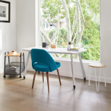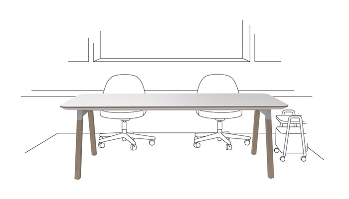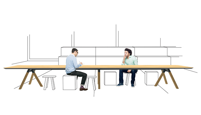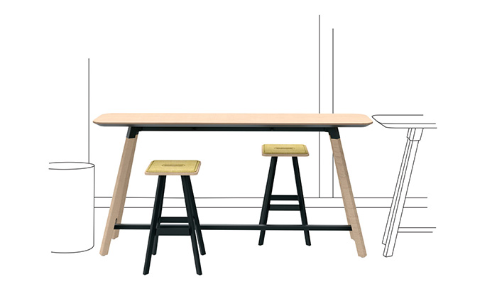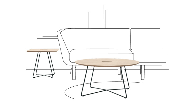 The warm expression of wood and curved touchpoints of Unscripted tables bring hospitality and an approachable air to the workplace. Ranging from long library tables, to sawhorse tables and drink rails, to easy work tables, Unscripted tables bring a convivial spirit to informal, multi-use spaces. They serve as a creative platform, as the invitation to gather round, disband and come back together again, all in the span of a day. Unscripted occasional tables—from coffee to bar-height— lend a relaxed, eclectic aesthetic to the workplace.