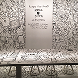 The Rockwell Group + Knoll DIFFA dining space featured an interactive design enlivened by the artwork of Jon Burgerman.