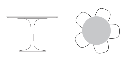 With the Pedestal Collection, Eero Saarinen vowed to eliminate the "slum of legs" found under chairs and tables with four legs. He worked first with hundreds of drawings, which were followed by ¼ scale models. Since the compelling idea was to design chairs that looked good in a room, the model furniture was set up in a scaled model room the size of a doll house.