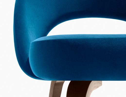 After completing the Womb Chair, Saarinen returned his focus to task seating, scaling down the concept and form of the womb into arm and armless chairs. Introduced as the 71 and 72 Series, the chairs replaced Florence Knoll’s model 43 chairs as the Planning Unit’s go-to seating solution. The iconic chair, often referred to as “that chair with the hole in the back,” has been a staple of the Knoll portfolio for more than 60 years.