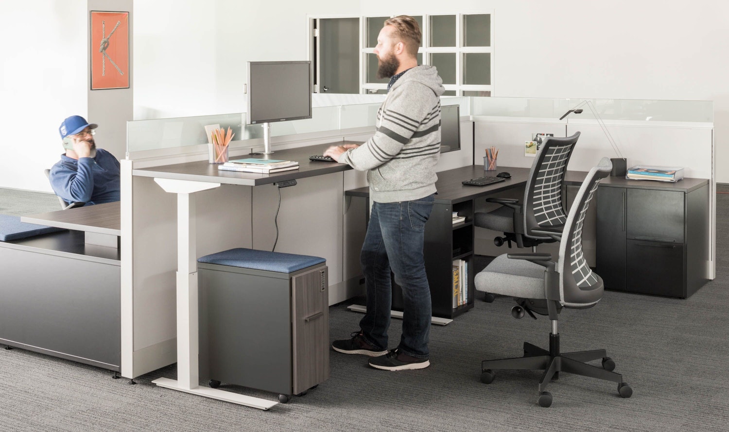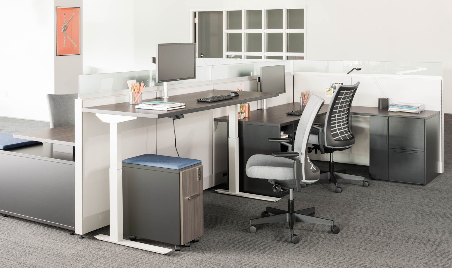 Tone is a comprehensive collection of height-adjustable tables, offering dozens of shapes, sizes, colors and configurations to outfit any space. As a standalone table or together with monitor arms, keyboard trays and privacy screens, Tone promotes well-being by allowing users to keep moving throughout the day.