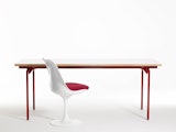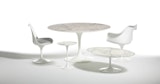 Saarinen was assisted by Don Petitt, of Knoll’s Design Development Group, who introduced several ingenious methods of model making. Together with a Knoll design research team, they worked out the problems arising in production. Full scale models became furniture and, with family and friends acting as “guinea pigs,” the furniture was tested in the dining room and living room of the Saarinen house in Bloomfield Hills.