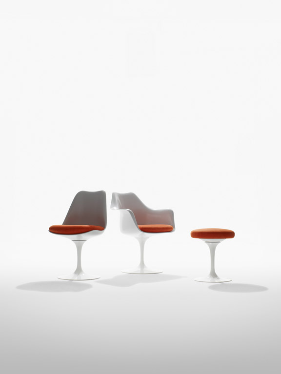 Eero Saarinen vowed to address the “ugly, confusing, unrestful world” he observed underneath chairs and tables -- the so-called "slum of legs." A five-year design investigation led him to the revolutionary Pedestal Collection, including the Tulip Stool.
