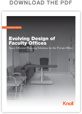 Recently, Knoll conducted a study among several American universities to determine the most flexible and efficient means of planning and furnishing the traditional faculty private office with today's needs in mind. Knoll visited with planning and design faculty and professionals at each participating university and found that the responses, needs and planning challenges were remarkably consistent, regardless of age, tenure, field of study and geography.