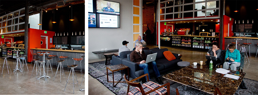 The hub of Galvanize, Gather, features a café, bar and lounge area, where guests and members are encouraged to convene over food and drink to exchange ideas.