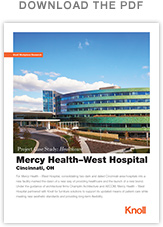 For Mercy Health - West Hospital, consolidating two dark and dated Cincinnati-area hospitals into a new facility marked the dawn of a new way of providing healthcare and the launch of a new brand. Under the guidance of architectural firms Champlin Architecture and AECOM, Mercy Health - West Hospital partnered with Knoll for furniture solutions to support its updated means of patient care while meeting new aesthetic standards and providing long-term flexibility.