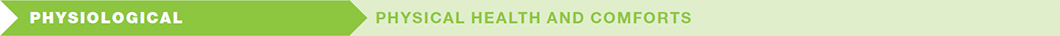 • Physiological: Physical health and comforts