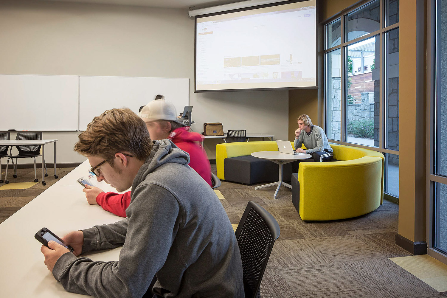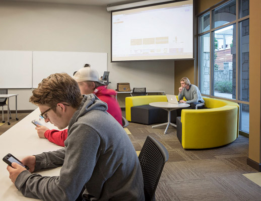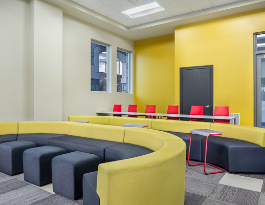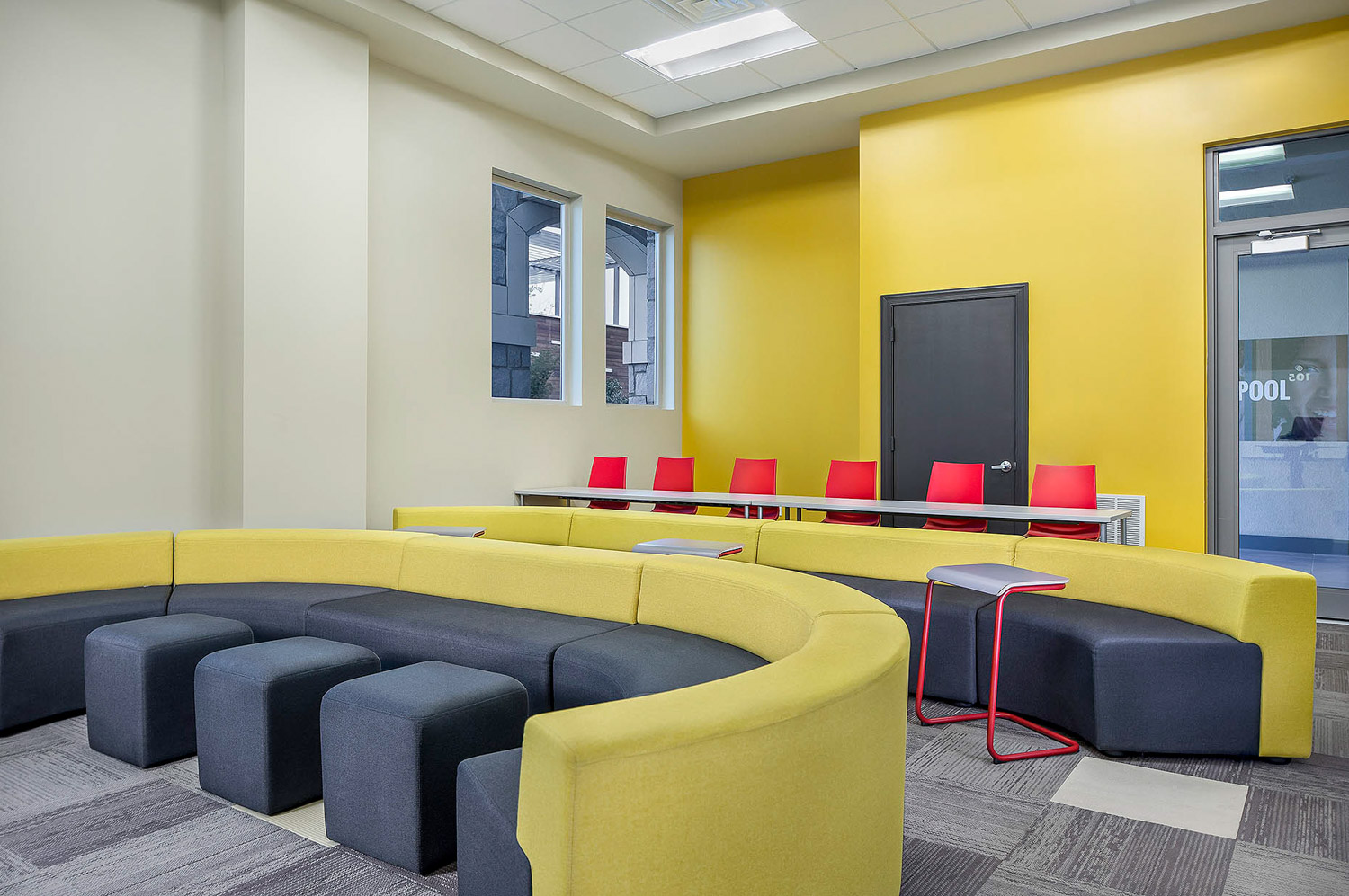17378 | Student Union | k. lounge with Back, MultiGeneration by Knoll Light Task Chair, Bertoia Molded Shell Barstool
