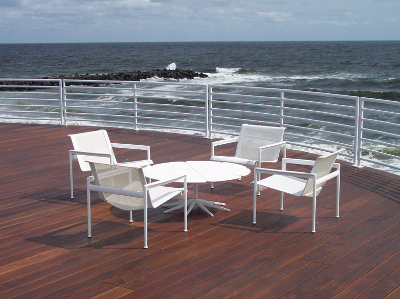 Schultz is best known for his outdoor furniture designs. His graceful Petal Table, introduced in 1960, received the design award from Industrial Design magazine. The steel wire-formed 715 Chaise Lounge, which was introduced the following year to complement the Bertoia collection, was selected in 1963 by the Museum of Modern Art for its permanent collection of contemporary furniture. After Florence Knoll moved to a seaside home in Florida, she started sending the design team rusty pieces of furniture, asking them to develop something that could perform in the salty climate. Schultz responded with the aluminum Leisure Collection in 1966.