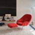 After winning the Museum of Modern Art Organic Design Competition with Charles Eames for their experiments with bent plywood in 1941, Eero Saarinen was eager to continue exploring the possibilities of a chair that achieved comfort through the shape of its shell, not the depth of its cushioning. Initially, he began the investigation with designs for smaller fiberglass task chairs, but changed direction when Florence Knoll approached him and asked, “Why not take the bull by the horns and do the big one first? I want a chair that is like a basket full of pillows…something I can curl up in.” While that’s not exactly where Saarinen ended up, the suggestion inspired one of the most iconic, and comfortable, chairs of the modern furniture movement.