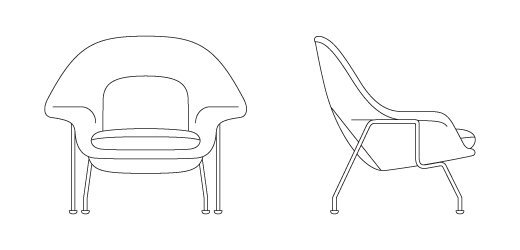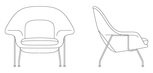 Like many of Saarinen’s furniture designs, the Womb Chair required production techniques and materials still in the infancy of their existence. Saarinen and Florence Knoll found a boat builder in New Jersey who was experimenting with fiberglass and resin to help develop manufacturing methods for the new chair. Florence Knoll: “He was very skeptical. We just begged him. I guess we were so young and so enthusiastic he finally gave in and worked with us. We had lots of problems and failures until they finally got a chair that would work.”