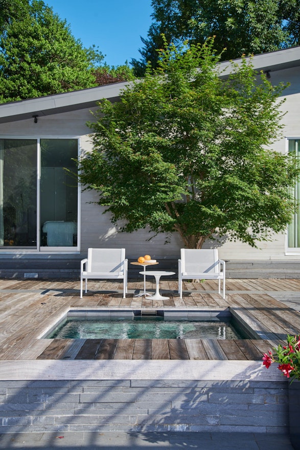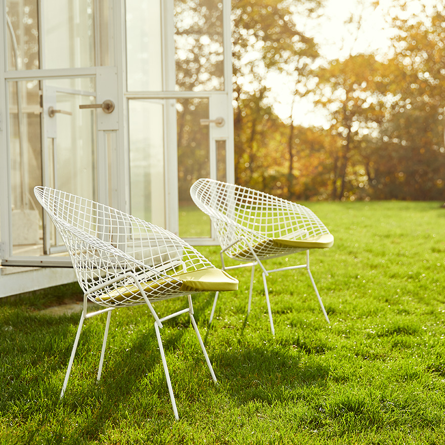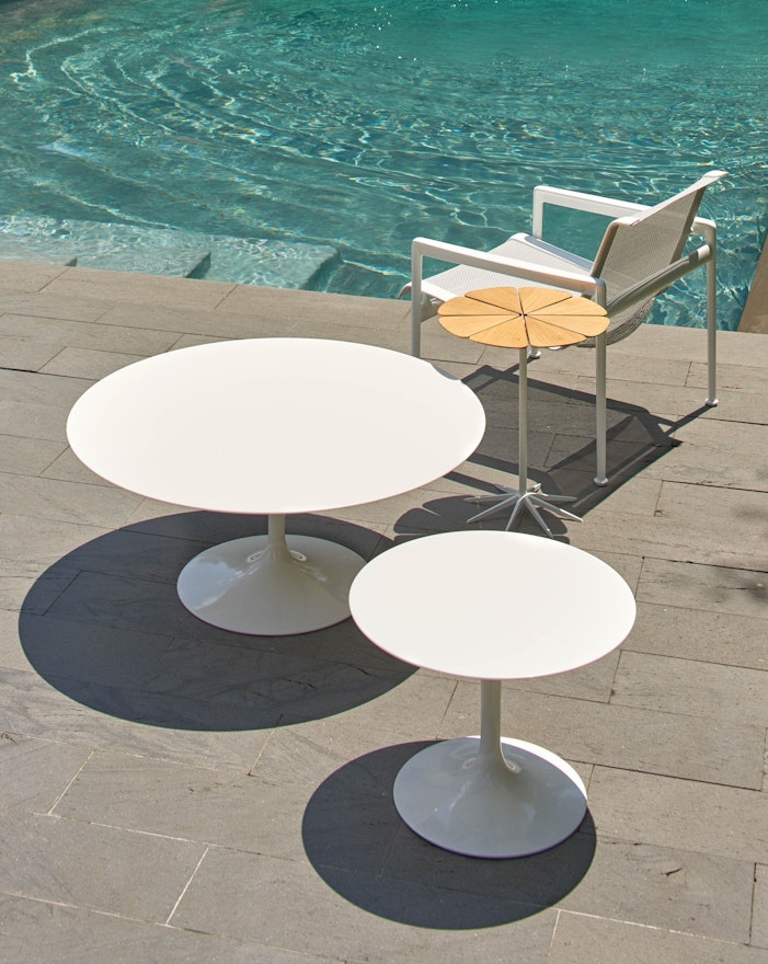 Bring the modern aesthetic outdoors with seating and tables by classic and contemporary designers