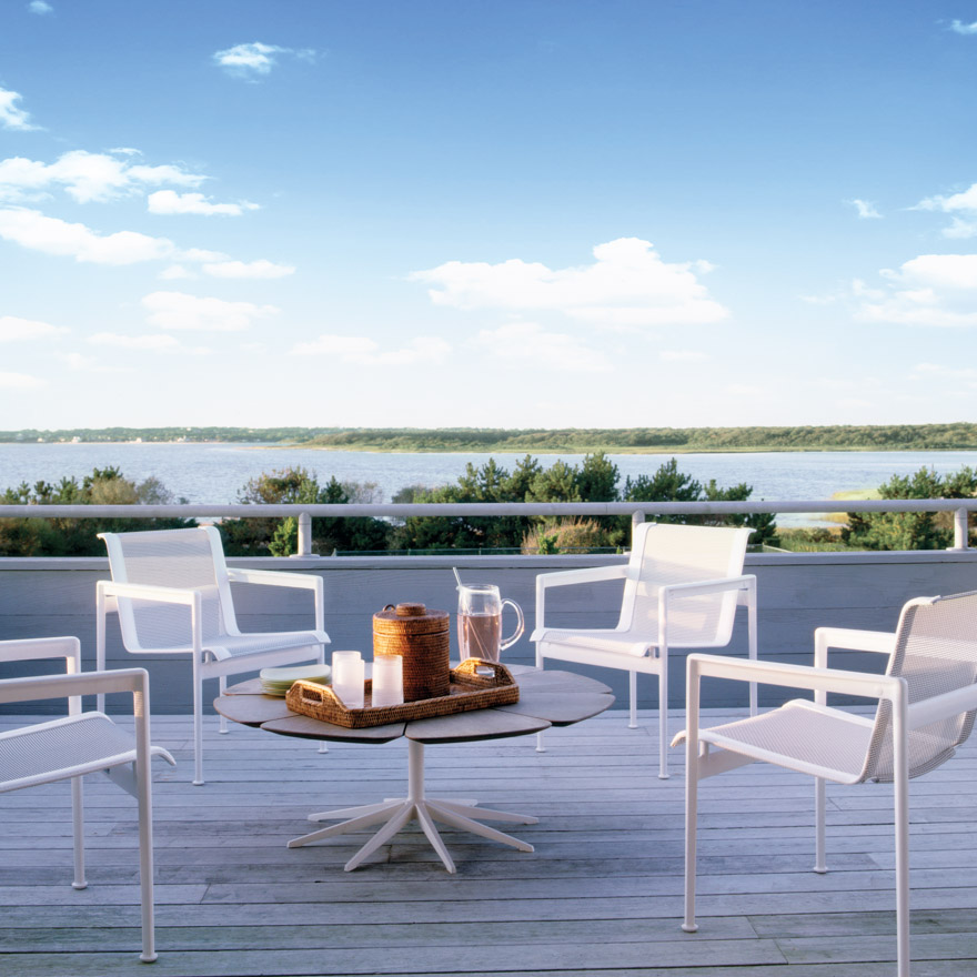 When Florence Knoll moved to a seaside home in Florida, she began sending the design team rusty pieces of furniture and requested that they develop something that would perform in the salty climate. Richard Schultz's response was the aluminum Leisure Collection in 1966. It is regarded as the first collection of truly modern outdoor furniture.