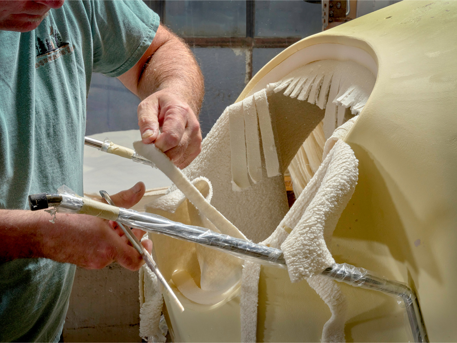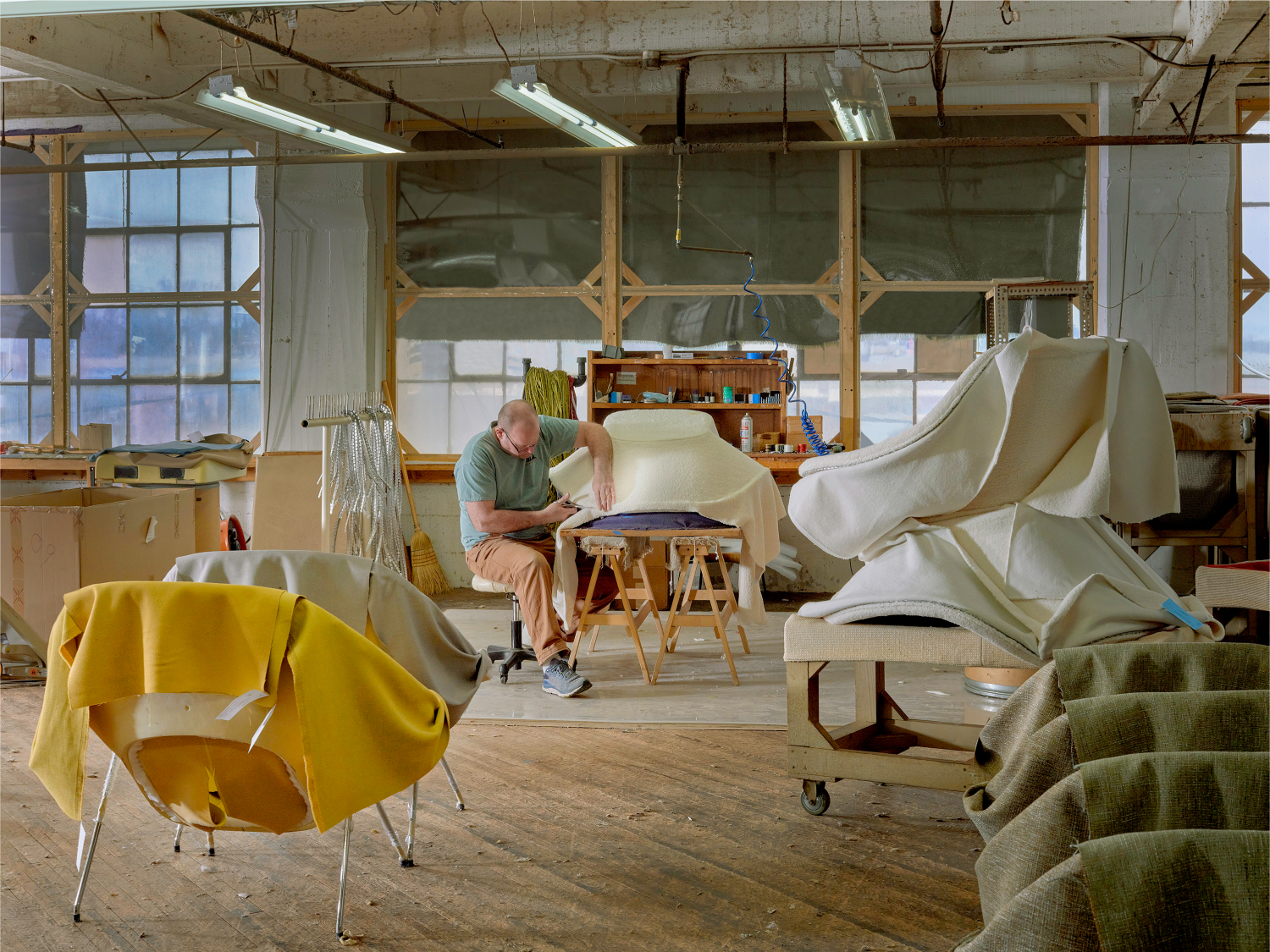 From molding and shaping the shell to stitching perfectly tailored seams, a team of highly skilled artisans have mastered a methodical approach to make every Womb Chair.