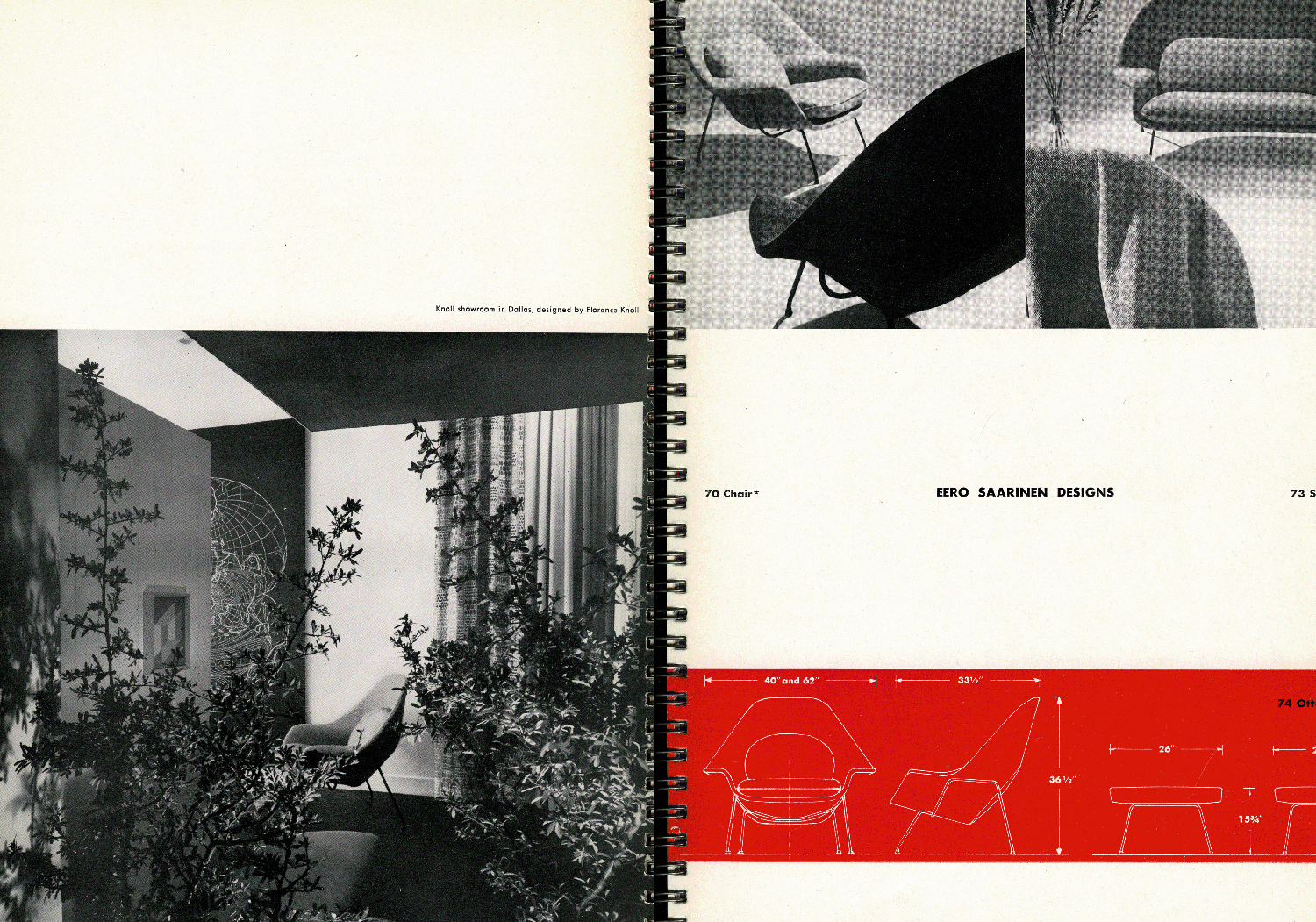 “I told Eero I was sick and tired of the one-dimensional lounge chair…long and narrow. I want a chair I can sit sideways in or any other way I want,” she said of her 1946 request. Her friend and collaborator agreed, noting the need for a “large and really comfortable chair to take the place of the old, overstuffed chair”—one that would suit the look of their own modern interiors.